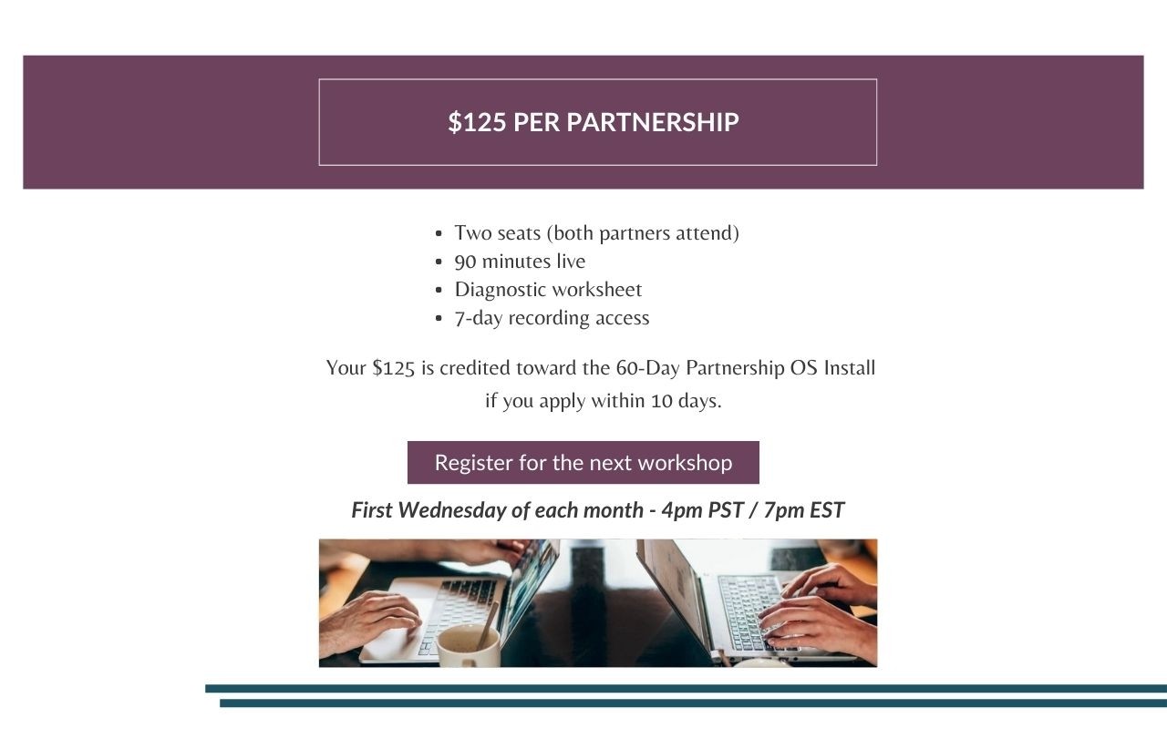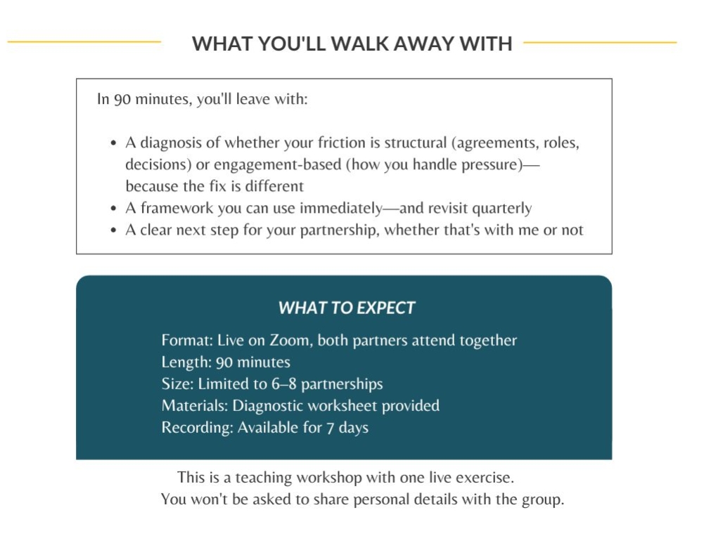 $125 per partnership (two seats) • 90 minutes • capped at 6–8 partnerships